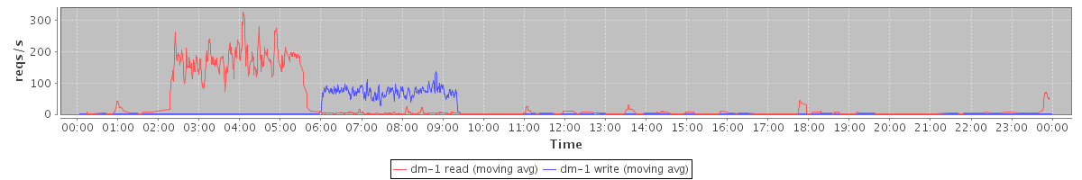 avg(dm-1 read) = 1117.30 avg(dm-1 write) = 375.58