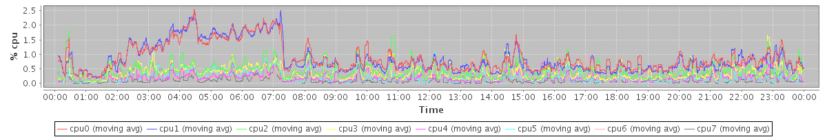 avg(cpu0) = 0.15 avg(cpu1) = 0.14 avg(cpu2) = 0.05 avg(cpu3) = 0.04 avg(cpu4) = 0.03 avg(cpu5) = 0.02 avg(cpu6) = 0.03 avg(cpu7) = 0.01