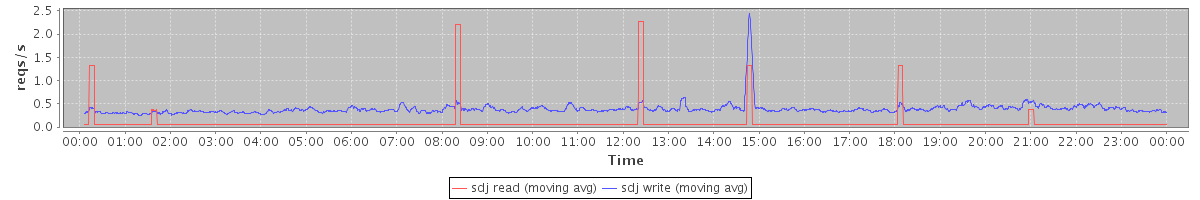 avg(sdj read) = 0.37 avg(sdj write) = 39.34