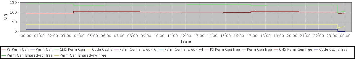avg(PS Perm Gen) = 0.00 avg(Perm Gen) = 0.00 avg(CMS Perm Gen) = 137.92 avg(Code Cache) = 35.26 avg(Perm Gen [shared-ro]) = 0.00 avg(Perm Gen [shared-rw]) = 0.00 avg(PS Perm Gen free) = 0.00 avg(Perm Gen free) = 0.00 avg(CMS Perm Gen free) = 100.84 avg(Code Cache free) = 10.74 avg(Perm Gen [shared-ro] free) = 0.00 avg(Perm Gen [shared-rw] free) = 0.00