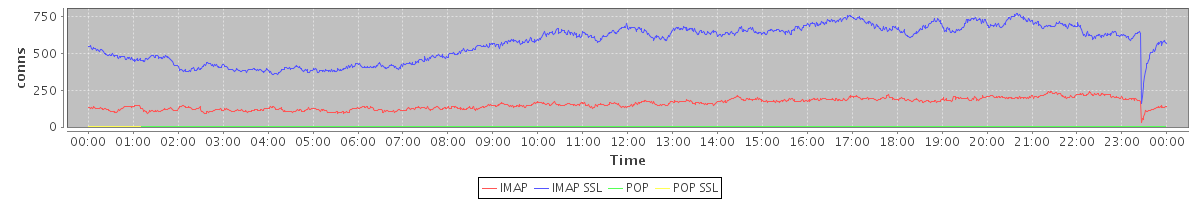 avg(IMAP) = 156.12 avg(IMAP SSL) = 570.79 avg(POP) = 0.06 avg(POP SSL) = 1.44