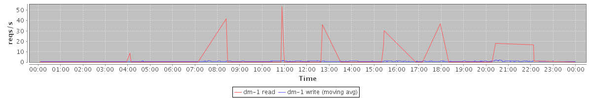 avg(dm-1 read) = 0.09 avg(dm-1 write) = 0.85