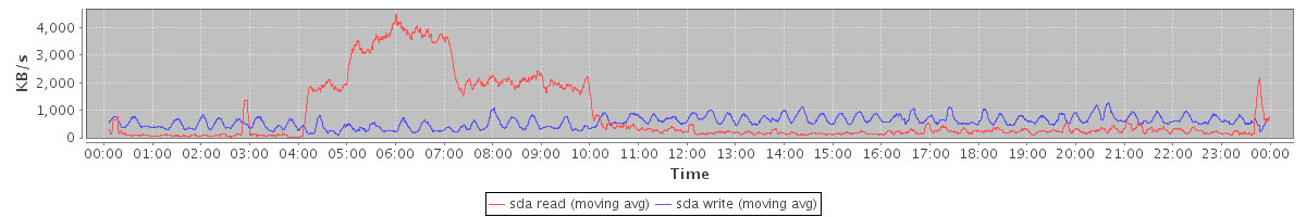 avg(sda read) = 52.78 avg(sda write) = 23.45