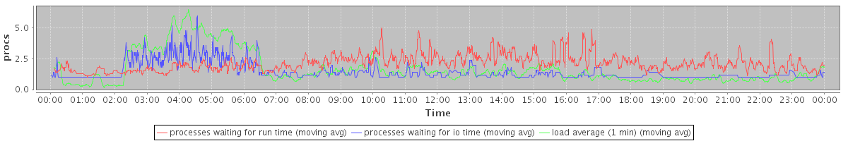 avg(processes waiting for run time) = 1.59 avg(processes waiting for io time) = 0.72 avg(load average (1 min)) = 1.67
