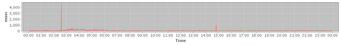 max(MsgActionRequest.move) = 269.00 max(GetContactsRequest) = 1195.00 max(MsgActionRequest.delete) = 2207.00 max(NoOpRequest) = 431.00 max(MsgActionRequest.update) = 744.00 max(WaitSetRequest) = 313.00 max(GetFolderRequest) = 191.00 max(SyncRequest) = 571.00 max(SearchGalRequest) = 5834.00 max(GetAppointmentRequest) = 1877.00