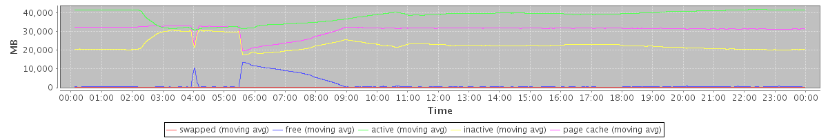 avg(swapped) = 4.26 avg(free) = 1542.03 avg(active) = 38362.33 avg(inactive) = 22757.76 avg(page cache) = 30955.10