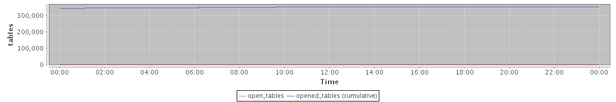 avg(open_tables) = 1187.56 avg(opened_tables (cumulative)) = 351837.11
