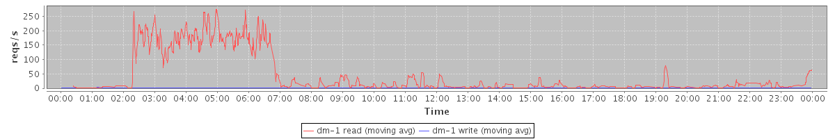 avg(dm-1 read) = 1605.82 avg(dm-1 write) = 0.21