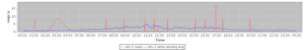 avg(dm-2 read) = 0.05 avg(dm-2 write) = 1.75