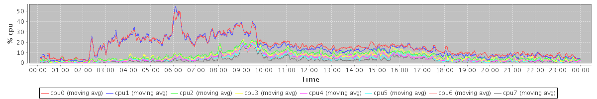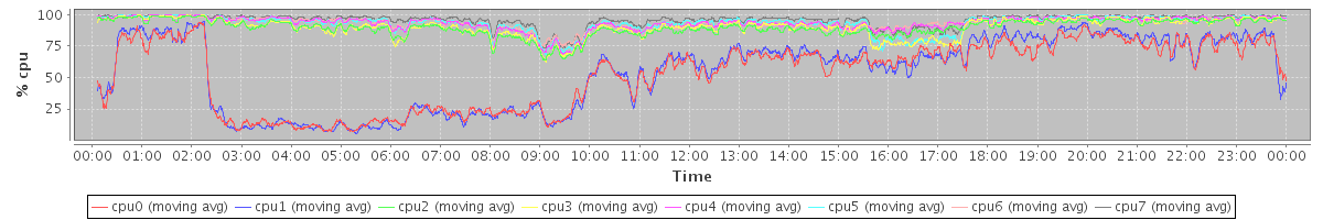 avg(cpu0) = 1.62 avg(cpu1) = 1.60 avg(cpu2) = 1.13 avg(cpu3) = 1.13 avg(cpu4) = 0.84 avg(cpu5) = 0.87 avg(cpu6) = 0.72 avg(cpu7) = 0.59