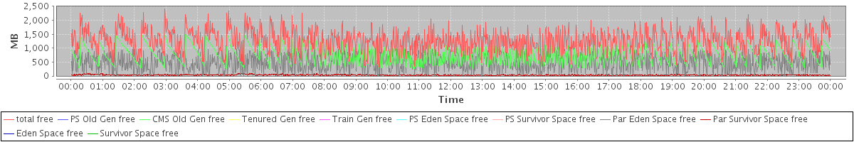 avg(total free) = 1269.84 avg(PS Old Gen free) = 0.00 avg(CMS Old Gen free) = 763.17 avg(Tenured Gen free) = 0.00 avg(Train Gen free) = 0.00 avg(PS Eden Space free) = 0.00 avg(PS Survivor Space free) = 0.00 avg(Par Eden Space free) = 475.58 avg(Par Survivor Space free) = 31.08 avg(Eden Space free) = 0.00 avg(Survivor Space free) = 0.00