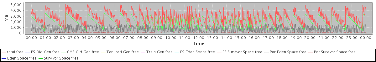 avg(total free) = 2773.70 avg(PS Old Gen free) = 0.00 avg(CMS Old Gen free) = 1935.85 avg(Tenured Gen free) = 0.00 avg(Train Gen free) = 0.00 avg(PS Eden Space free) = 0.00 avg(PS Survivor Space free) = 0.00 avg(Par Eden Space free) = 793.58 avg(Par Survivor Space free) = 44.28 avg(Eden Space free) = 0.00 avg(Survivor Space free) = 0.00