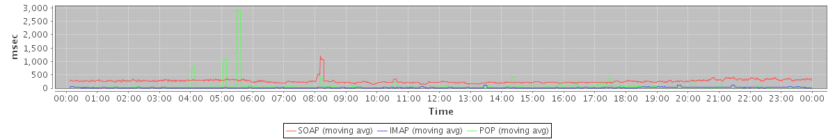 avg(SOAP) = 262.24 avg(IMAP) = 24.65 avg(POP) = 73.74