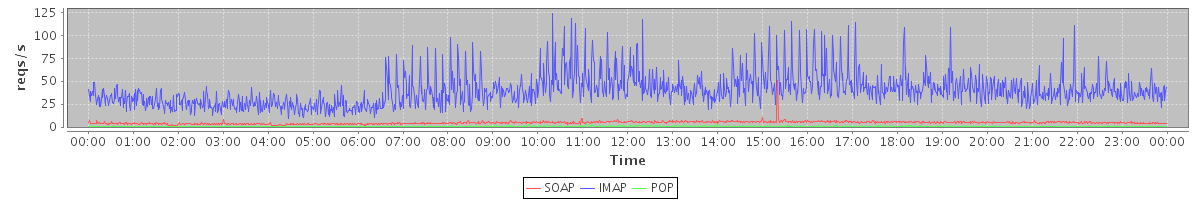 Host zm01.stanford.edu: Mailboxd: Request Rate by Client Protocol
