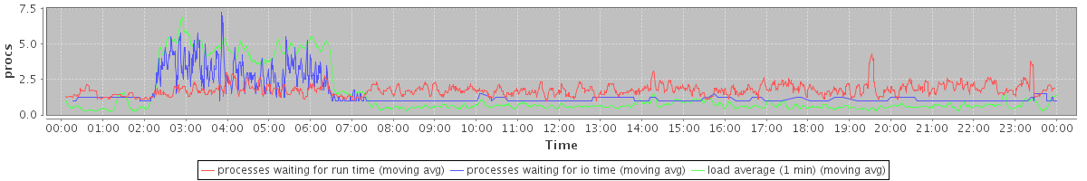avg(processes waiting for run time) = 1.13 avg(processes waiting for io time) = 0.66 avg(load average (1 min)) = 1.41