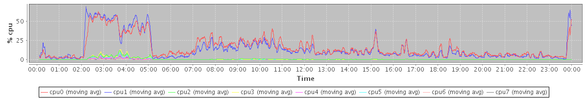 avg(cpu0) = 0.25 avg(cpu1) = 0.12 avg(cpu2) = 0.07 avg(cpu3) = 0.03 avg(cpu4) = 0.10 avg(cpu5) = 0.02 avg(cpu6) = 0.02 avg(cpu7) = 0.01