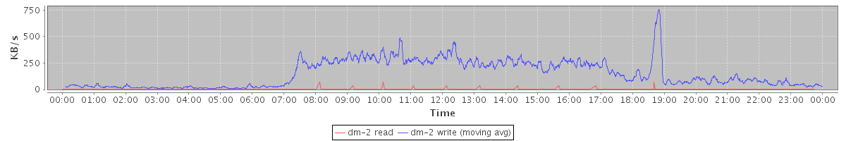 avg(dm-2 read) = 0.04 avg(dm-2 write) = 0.99