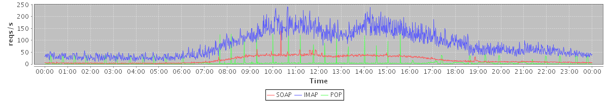 Host zm04.stanford.edu: Mailboxd: Request Rate by Client Protocol