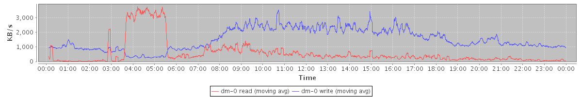 avg(dm-0 read) = 584.62 avg(dm-0 write) = 1525.83