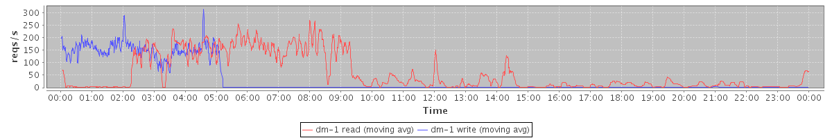 avg(dm-0 read) = 134.32 avg(dm-0 write) = 94.75