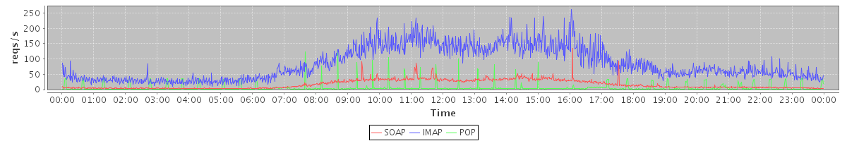 Host zm04.stanford.edu: Mailboxd: Request Rate by Client Protocol