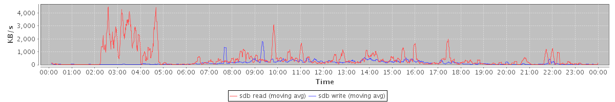 avg(sdb read) = 26.43 avg(sdb write) = 7.54