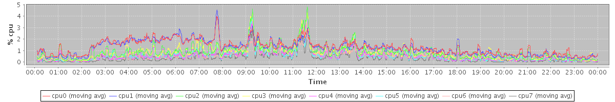 avg(cpu0) = 0.27 avg(cpu1) = 0.24 avg(cpu2) = 0.12 avg(cpu3) = 0.10 avg(cpu4) = 0.09 avg(cpu5) = 0.07 avg(cpu6) = 0.10 avg(cpu7) = 0.05