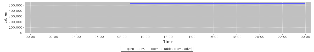 avg(open_tables) = 1185.88 avg(opened_tables (cumulative)) = 527815.98