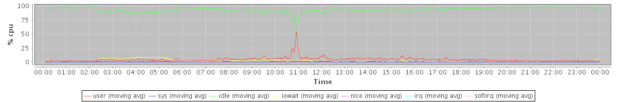 avg(user) = 4.33 avg(sys) = 0.41 avg(idle) = 93.27 avg(iowait) = 1.95 avg(nice) = 0.00 avg(irq) = 0.00 avg(softirq) = 0.04