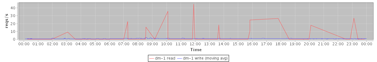 avg(dm-1 read) = 0.38 avg(dm-1 write) = 128.14