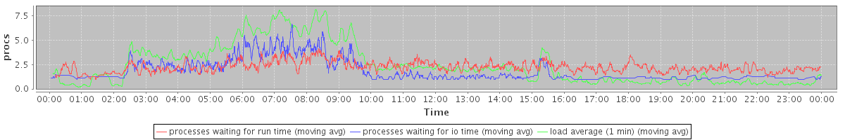 avg(processes waiting for run time) = 1.83 avg(processes waiting for io time) = 1.28 avg(load average (1 min)) = 2.42