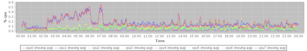 avg(cpu0) = 0.15 avg(cpu1) = 0.16 avg(cpu2) = 0.05 avg(cpu3) = 0.07 avg(cpu4) = 0.03 avg(cpu5) = 0.04 avg(cpu6) = 0.03 avg(cpu7) = 0.02