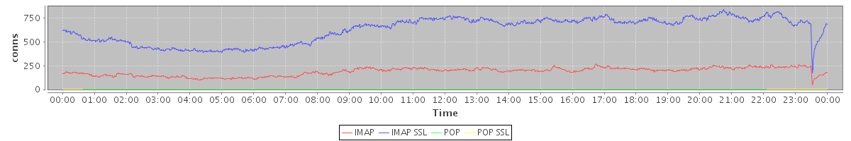 Host zm05.stanford.edu: Mailboxd: Active Connections by Client Protocol