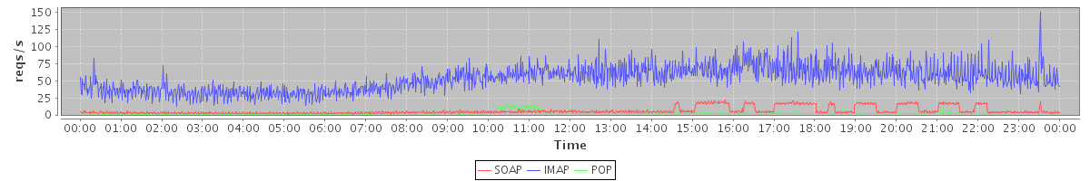 Host zm05.stanford.edu: Mailboxd: Request Rate by Client Protocol