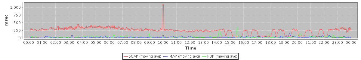 Host zm05.stanford.edu: Mailboxd: Response Time by Client Protocol