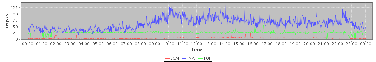 Host zm07.stanford.edu: Mailboxd: Request Rate by Client Protocol