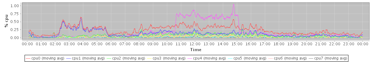 avg(cpu0) = 1.06 avg(cpu1) = 0.85 avg(cpu2) = 0.58 avg(cpu3) = 0.42 avg(cpu4) = 0.83 avg(cpu5) = 0.29 avg(cpu6) = 0.31 avg(cpu7) = 0.18