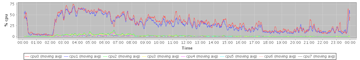 avg(cpu0) = 0.43 avg(cpu1) = 0.37 avg(cpu2) = 0.30 avg(cpu3) = 0.29 avg(cpu4) = 0.20 avg(cpu5) = 0.21 avg(cpu6) = 0.16 avg(cpu7) = 0.14