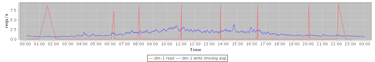 avg(dm-1 read) = 0.11 avg(dm-1 write) = 308.86