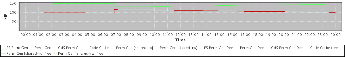 avg(PS Perm Gen) = 0.00 avg(Perm Gen) = 0.00 avg(CMS Perm Gen) = 139.98 avg(Code Cache) = 37.95 avg(Perm Gen [shared-ro]) = 0.00 avg(Perm Gen [shared-rw]) = 0.00 avg(PS Perm Gen free) = 0.00 avg(Perm Gen free) = 0.00 avg(CMS Perm Gen free) = 104.80 avg(Code Cache free) = 8.68 avg(Perm Gen [shared-ro] free) = 0.00 avg(Perm Gen [shared-rw] free) = 0.00