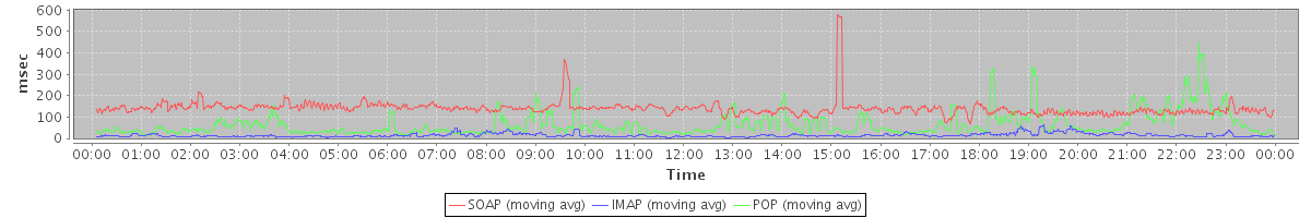 Host zm03.stanford.edu: Mailboxd: Response Time by Client Protocol