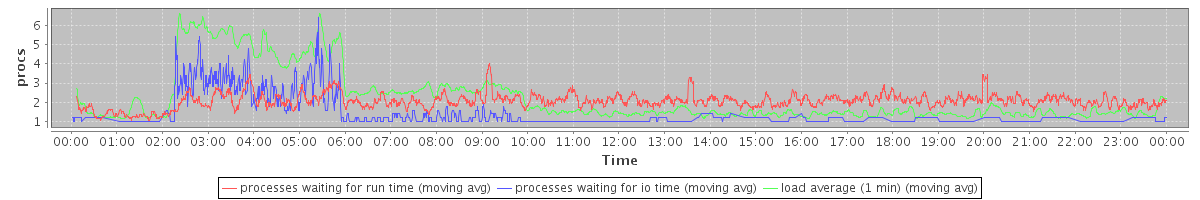 avg(processes waiting for run time) = 2.06 avg(processes waiting for io time) = 0.68 avg(load average (1 min)) = 2.22