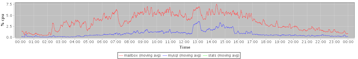 avg(mailbox) = 3.56 avg(mysql) = 0.84 avg(stats) = 0.00