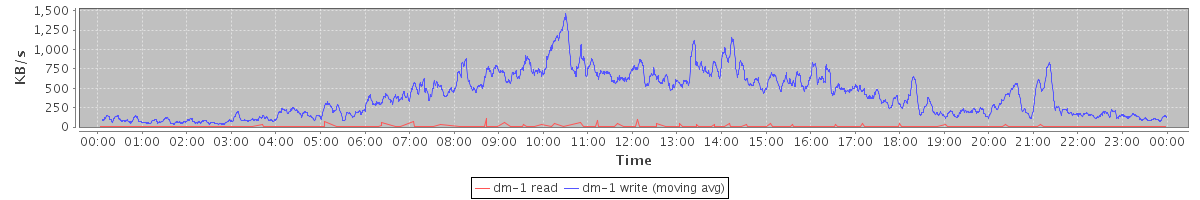 avg(dm-1 read) = 0.12 avg(dm-1 write) = 1.76