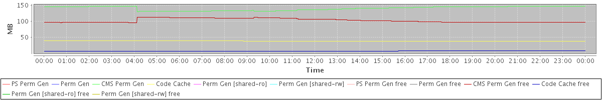 avg(PS Perm Gen) = 0.00 avg(Perm Gen) = 0.00 avg(CMS Perm Gen) = 140.08 avg(Code Cache) = 38.81 avg(Perm Gen [shared-ro]) = 0.00 avg(Perm Gen [shared-rw]) = 0.00 avg(PS Perm Gen free) = 0.00 avg(Perm Gen free) = 0.00 avg(CMS Perm Gen free) = 102.52 avg(Code Cache free) = 7.75 avg(Perm Gen [shared-ro] free) = 0.00 avg(Perm Gen [shared-rw] free) = 0.00