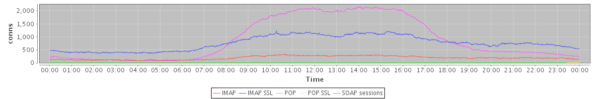 avg(IMAP) = 192.68 avg(IMAP SSL) = 760.40 avg(POP) = 0.04 avg(POP SSL) = 1.44 avg(SOAP sessions) = 898.29