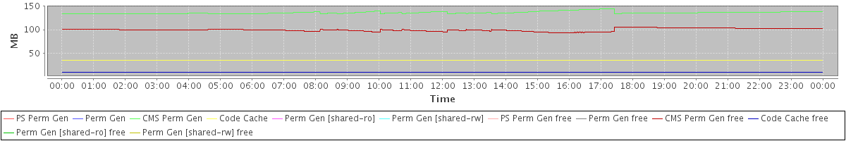 avg(PS Perm Gen) = 0.00 avg(Perm Gen) = 0.00 avg(CMS Perm Gen) = 135.76 avg(Code Cache) = 35.92 avg(Perm Gen [shared-ro]) = 0.00 avg(Perm Gen [shared-rw]) = 0.00 avg(PS Perm Gen free) = 0.00 avg(Perm Gen free) = 0.00 avg(CMS Perm Gen free) = 99.72 avg(Code Cache free) = 10.77 avg(Perm Gen [shared-ro] free) = 0.00 avg(Perm Gen [shared-rw] free) = 0.00