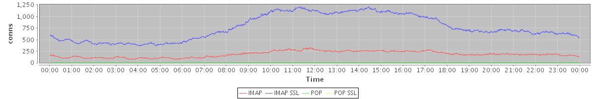avg(IMAP) = 185.28 avg(IMAP SSL) = 759.46 avg(POP) = 0.11 avg(POP SSL) = 0.95