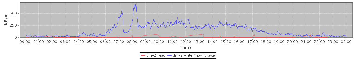 avg(dm-2 read) = 0.19 avg(dm-2 write) = 144.38