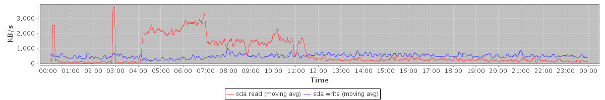 avg(sda read) = 714.16 avg(sda write) = 495.89